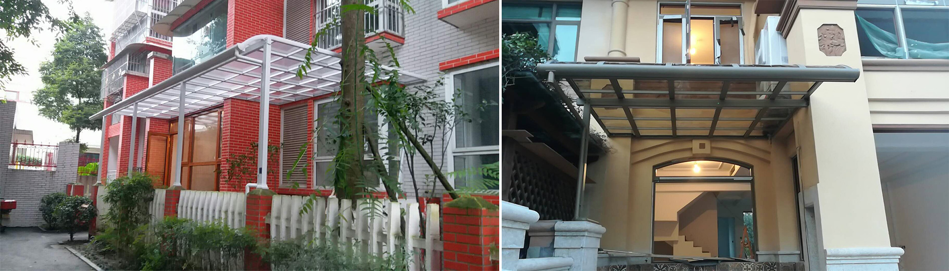 • 成都鼎固美家停車篷-鋁合金露臺篷-新型陽臺篷-成都別墅篷安裝